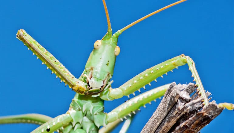 Some crickets’ wings have microscopic teeth on the underside that look like a file. When rubbed by a scraping mechanism on the other wing, the “teeth” emit the tell-tale chirp. Some grasshoppers scrape their legs with their wings. Some species of katydids communicate at frequencies at the ultrasound level, which is too high for the human ear to perceive.