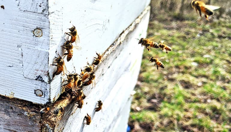 “Robber bees will take that honey and leave the other colony to starve,” she says. “It’s a very strong pressure.”