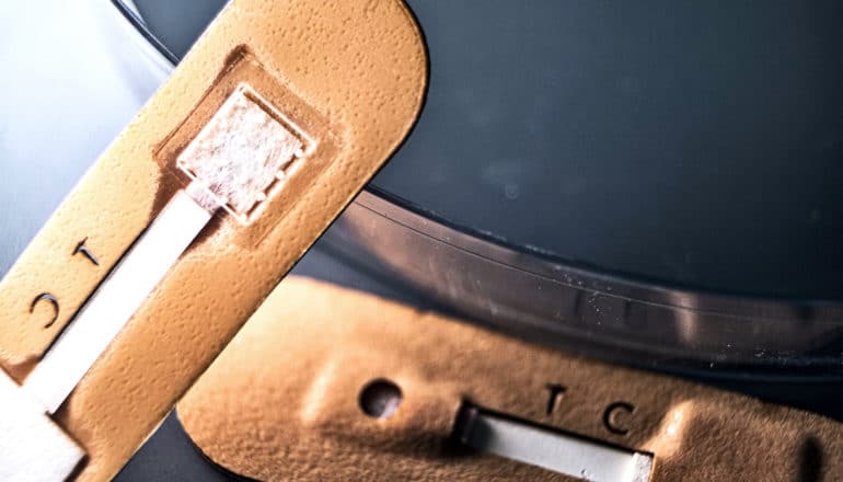 “Xue and I have applied the patch to our skin, and it doesn’t feel painful at all compared to a finger prick or a blood draw,” Lillehoj says. “It’s less painful than getting a splinter. I would say it feels like putting tape on your skin and then peeling it off.”