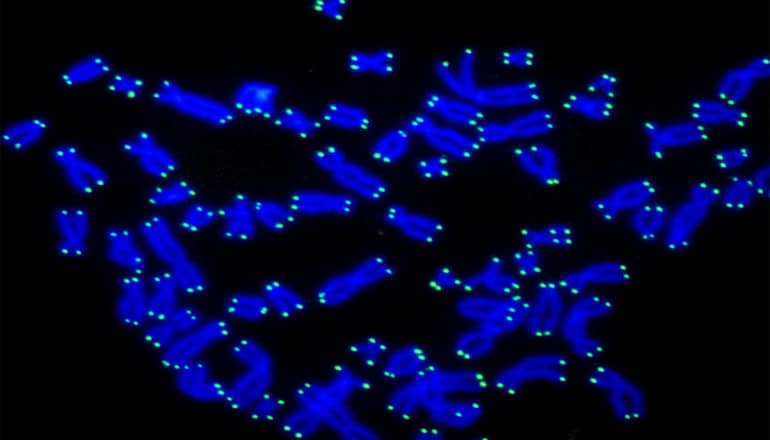 “Telomeres protect the genetic material,” says Titia de Lange, professor at Rockefeller University. “The DNA in telomeres shortens when cells divide, eventually halting cell division when the telomere reserve is depleted.”