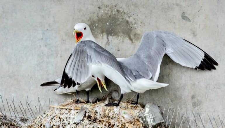 Researchers studied a colony of black-legged kittiwakes that breed and nest in an abandoned radar tower on Middleton Island, Alaska. They attached GPS-accelerometers onto kittiwakes to track their flight performance and discovered that they sometimes travel as far as 155 miles (250 kilometers) a day to find food for their offspring.