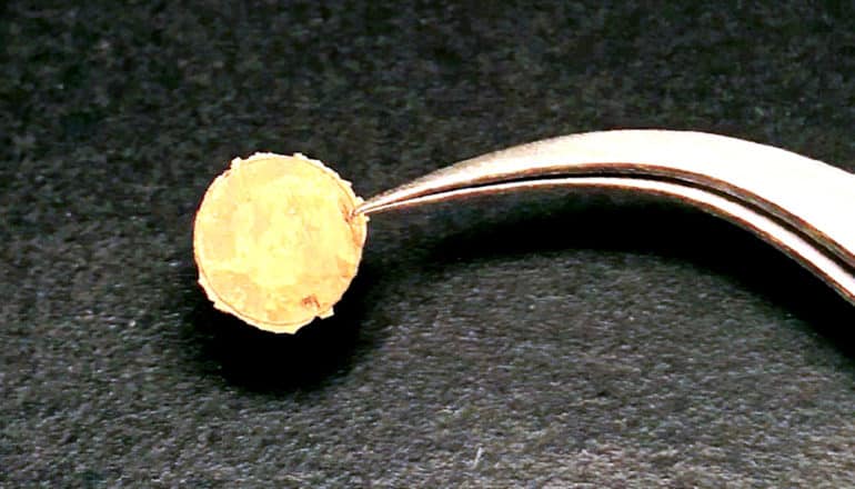 “Because of what’s known as the plasmonic effect, gold nanoparticles are actually purplish-black in color,” Chen says. “But when we applied pressure, we see these purplish clusters suddenly turn to a bright gold color. That’s one of the ways we knew we had actually formed bulk gold.”