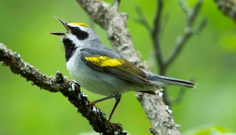 A new study describing the peculiar bird and pinpointing the location in the genome that controls the black face mask and the black throat patch in blue-winged and golden-winged warblers. The work appears online in the journal Ecology.