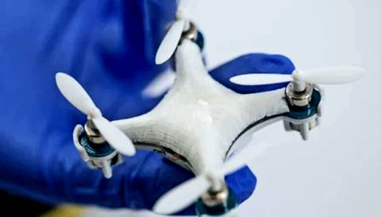 The sensors can assume a seemingly endless variety of forms. To demonstrate this, the researchers created viral sensing drones in which their fuselage was embedded with the sensor material. During flight, the propellers direct airflow through the porous body of the drone, which can be examined after landing. The drones, which in the example reacted to airborne pathogens such as SARS-CoV-2, could enable monitoring environments from a remote, safe distance.