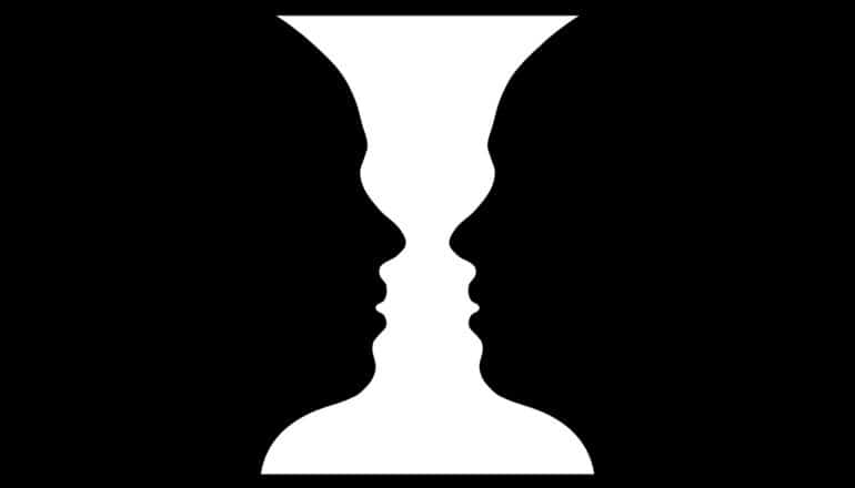 You may have seen the image above before. It’s black and white and has two silhouettes facing one another. Or maybe you see the white vase with a black background. But now, you likely see both.